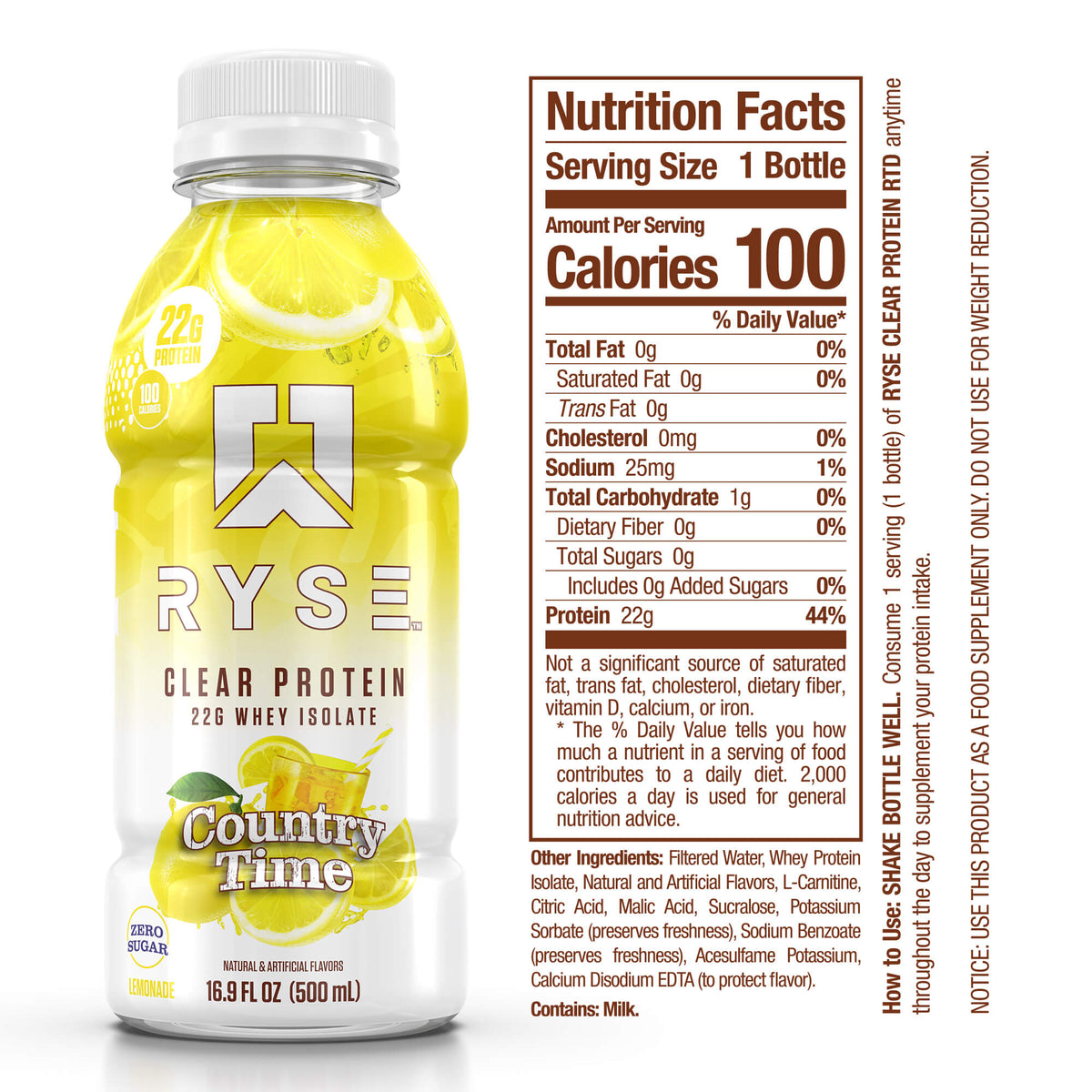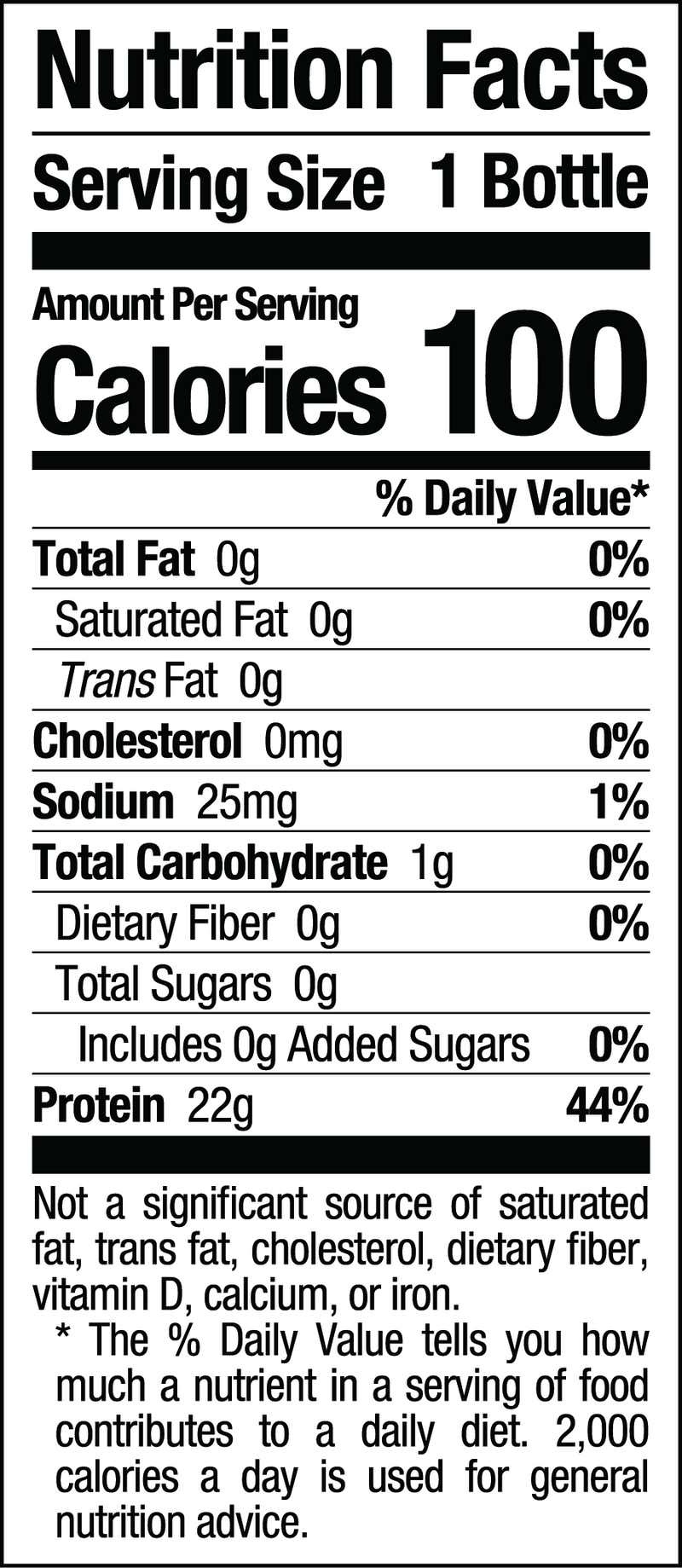 INGREDIENTS: Filtered Water, Whey Protein Isolate, Natural and Artificial Flavors, L-Carnitine, Citric Acid, Malic Acid, Sucralose, Potassium Sorbate (preserves freshness), Sodium Benzoate (preserves freshness), Acesulfame Potassium, Calcium Disodium EDTA (to protect flavor).