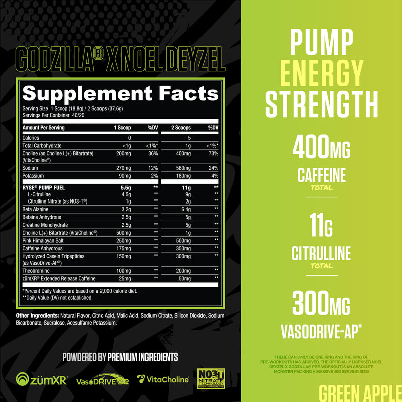 There can only be ONE King and the King of Pre-workouts has arrived. The officially licensed Noel Deyzel X Godzilla® Pre-Workout is an absolute monster. Packing a massive 40g serving size, this giant delivers city-crushing pumps, razor sharp focus & long-lasting explosive energy. Loaded with 12 ingredients, 5 clinically studied trademarks and a delicious blast of flavor, your new favorite pre-workout is ready for battle.