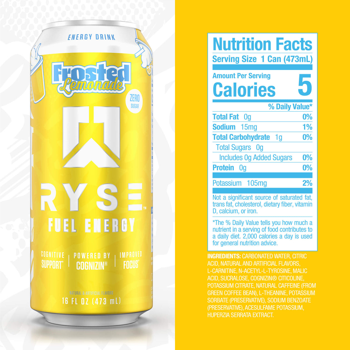 INGREDIENTS: CARBONATED WATER, CITRIC ACID, NATURAL AND ARTIFICIAL FLAVORS, L-CARNITINE, N-ACETYL-L-TYROSINE, MALIC ACID, SUCRALOSE, COGNIZIN® CITICOLINE, POTASSIUM CITRATE, NATURAL CAFFEINE (FROM GREEN COFFEE BEAN), L-THEANINE, POTASSIUM SORBATE (PRESERVATIVE), SODIUM BENZOATE (PRESERVATIVE), ACESULFAME POTASSIUM, HUPERZIA SERRATA EXTRACT.